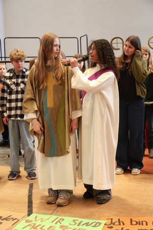 Die 6A hatte sich mit dem Motto beschäftigt „Du bist gut so wie du bist, mit deinen Stärken und Schwächen“, die 6G2 reflektierte in zwei gespielten Szenen Jesu Umgang mit kranken oder von der Gesellschaft ausgeschlossenen Menschen.